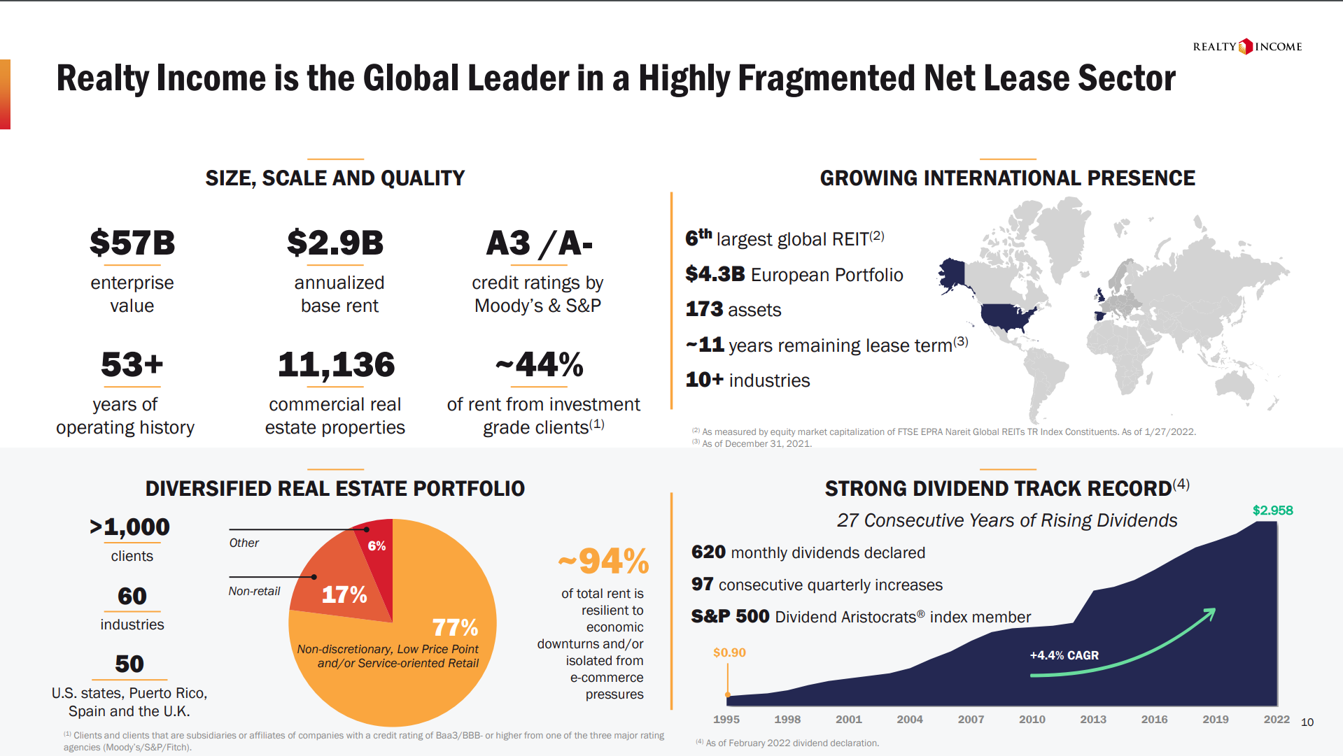 이를 대비하기 위해 리얼티 인컴은 자산의 분배를 다양하게 하였으며,