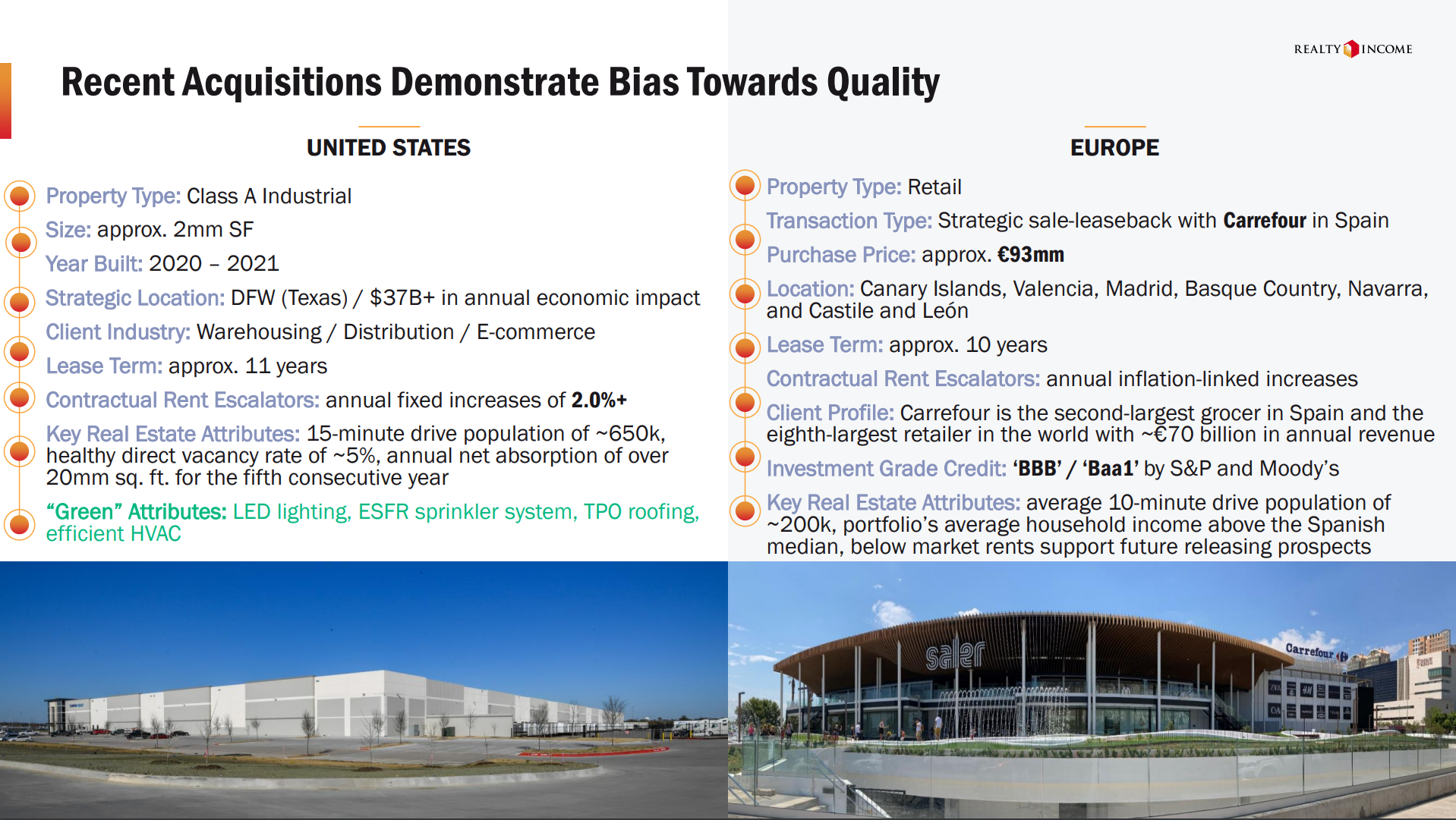 리얼티 인컴의 투자자 발표자료에 있는 최근 자산매입 건에 대한 내용입니다.