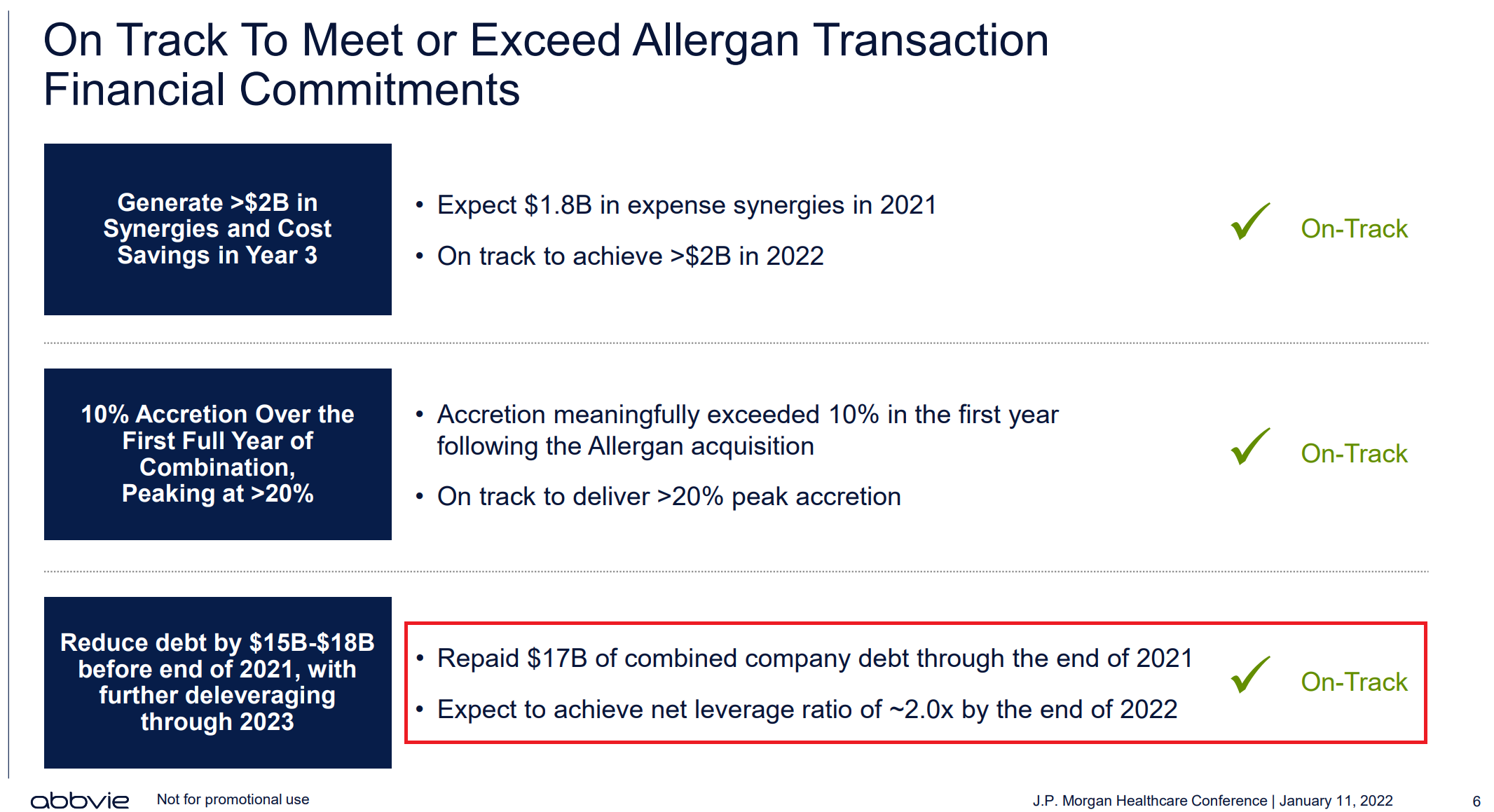 지었습니다. 이에 시너지 효과로 엘러건의 파이프라인과 포트폴리오를 취할 수 있게 됐습니다. 그러나 자산을 인수하면서 180억 달러가량 부채가 생겼습니다. 이에 2021년까지 잉여현금으로 이 부채를 상환한다고 하였으니, 상환 이후에 실적은 더욱 개선될 여지가 있을 것으로 보입니다.